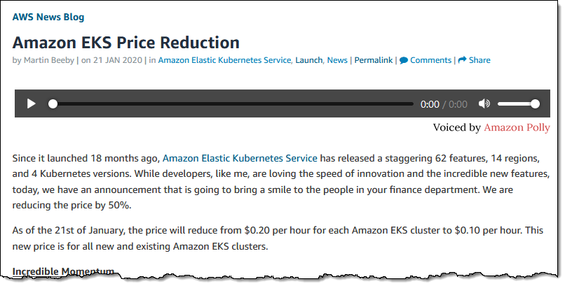 Effective Immediately - Amazon EKS Price Reduction - https://go.aws/2THXrpI pic.twitter.com/MEVbEgPTSq